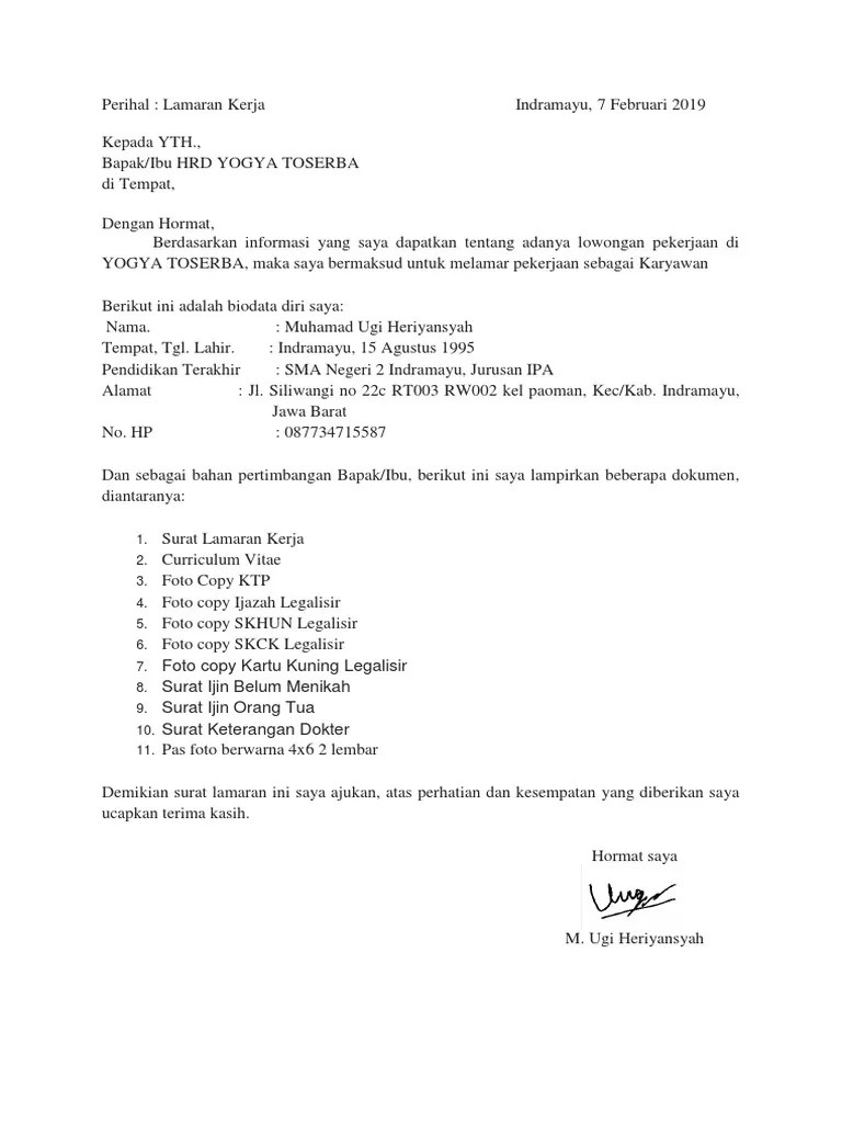 Contoh surat lamaran kerja ke yogya toserba. Format dari contoh surat lamaran kerja sangat mempengaruhi diterima tidaknya kita ketika sedang melamar di . Surat lamaran (dalam format pdf) . Pastikan surat lamaran kerja dan dokumen lampiran lainnya ditulis dengan baik dan benar. Pas foto 4 x 6 2.